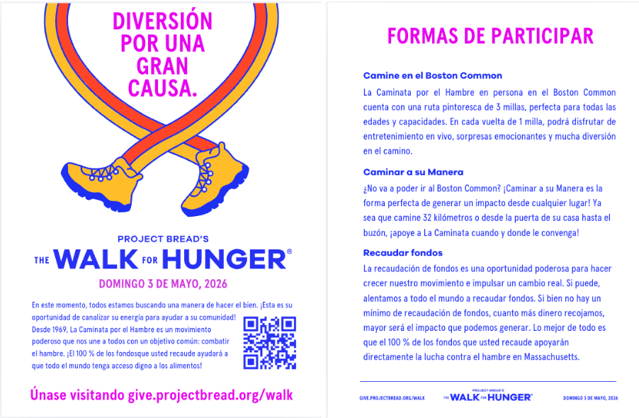 ¡Imprima este folleto de doble cara y ayude a difundir la información sobre La Caminata por el Hambre!